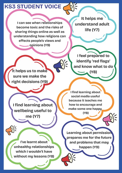 Across all year groups, learning is reinforced through cross-curricular links, including Science, PE and Business, and supported by a strong pastoral programme. This ensures pupils leave school with the knowledge, skills and confidence to stay safe, maintain healthy relationships and make positive choices as they transition to adulthood.